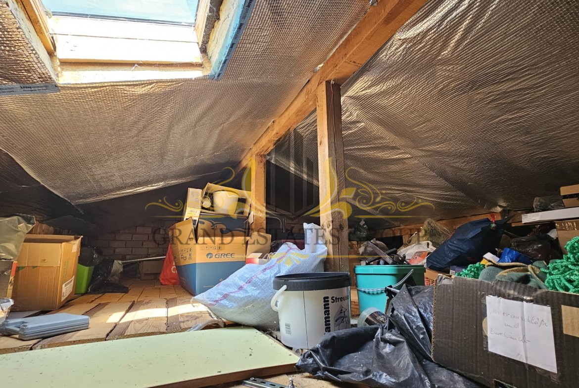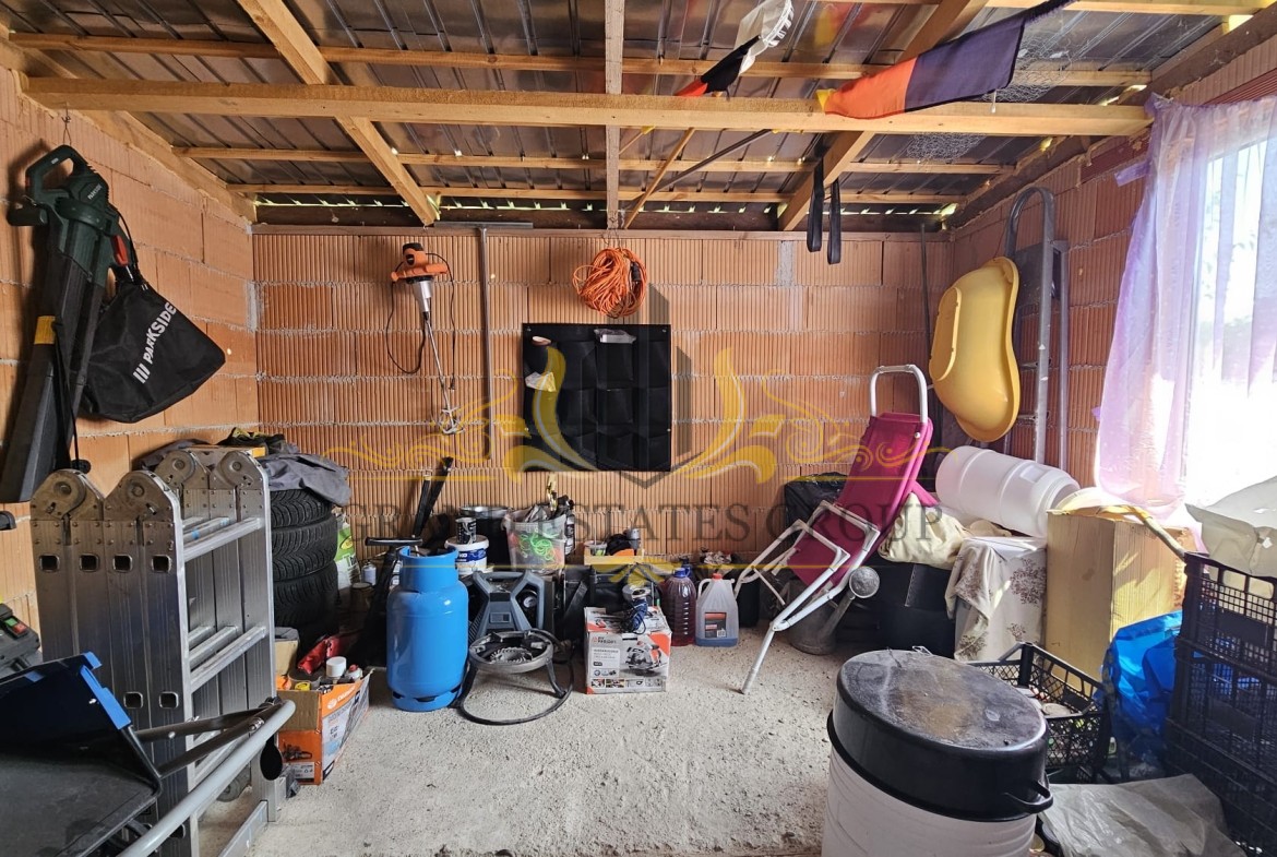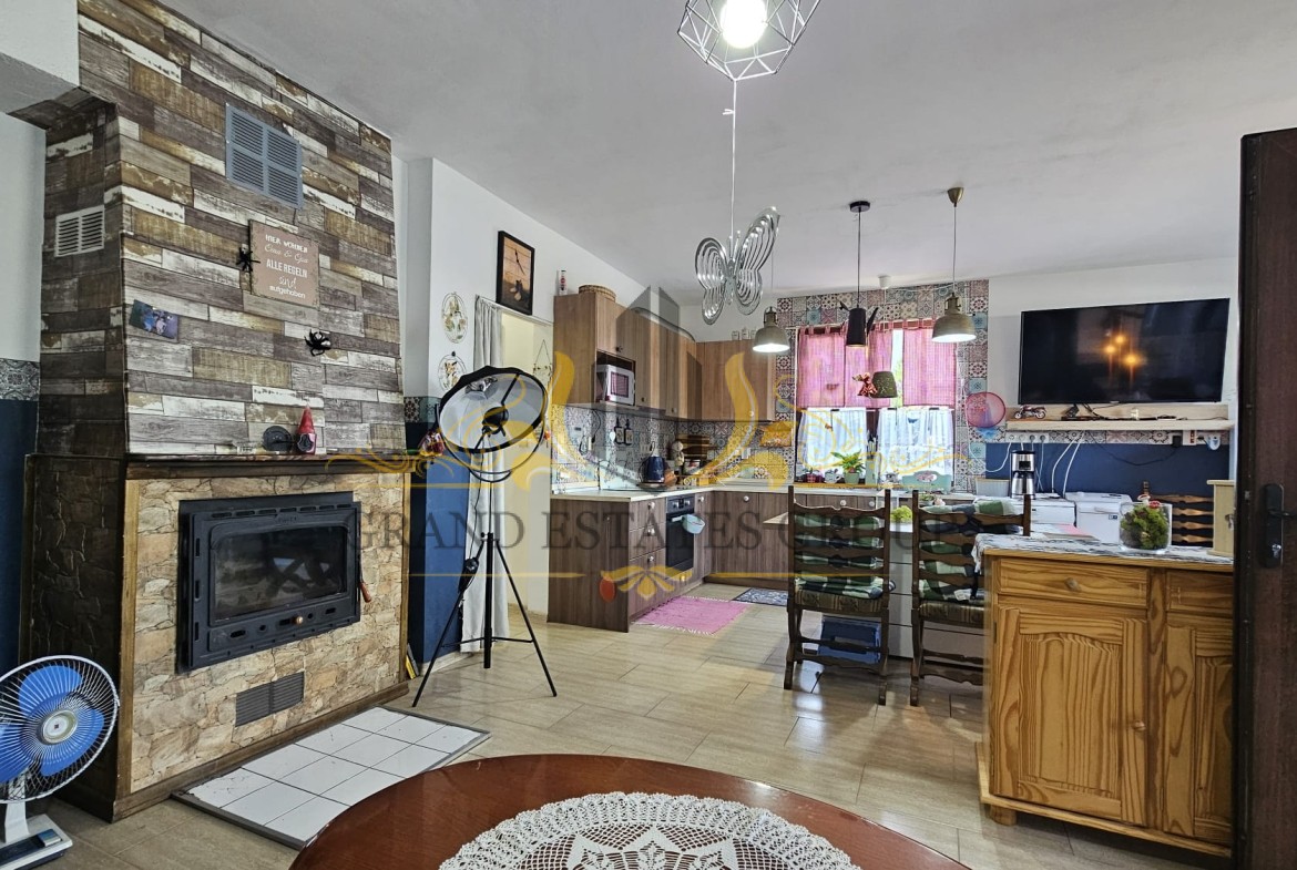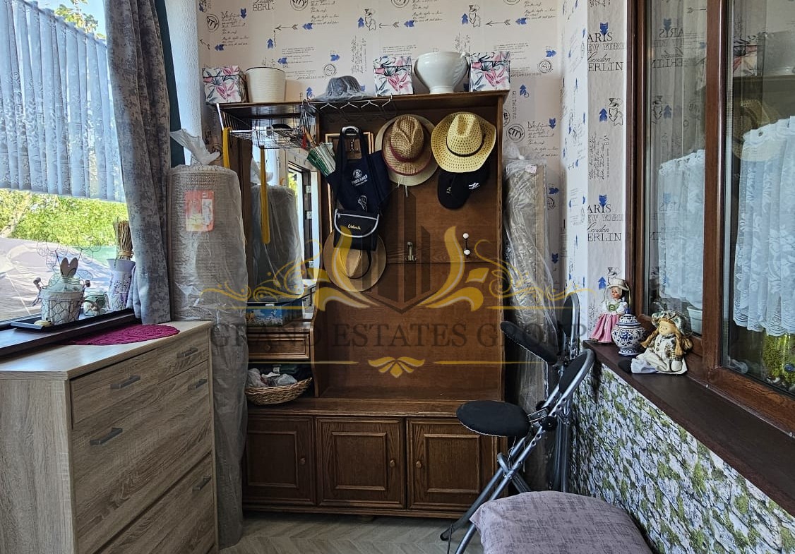 Дом общей площадью 130 м2 состоит из: Первый этаж: прихожей, просторной гостиной с кухонной зоной и камином с радиаторным разведением на каждую комнату, санузла с душем, кладового помещения с бойлером и закрытой верандой. Второй этаж: коридора с выдвижной лестницей на небольшое чердачное помещение, двух спален с общей террасой и санузла с душевой кабиной. Дом оснащён мебелью и техникой, в каждой комнате установлены кондиционеры, стоят солнечные панели.